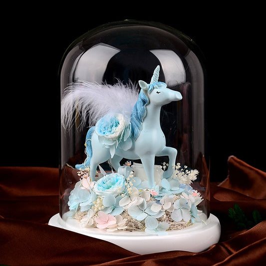 Preserved rose unicorn glass dome - a Valentine's Day gift for your girlfriend, a birthday gift, dried flowers that never wither.