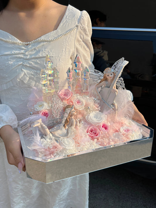 Roses, hydrangeas and angel garden castle for girlfriend proposal gift ornaments