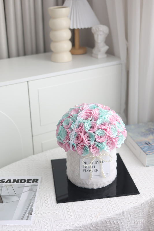 Little Monster Preserved Flower Hug Bucket (Rose) – A gift of eternal love, lasting beauty, perfect for mom, wife, and girlfriend