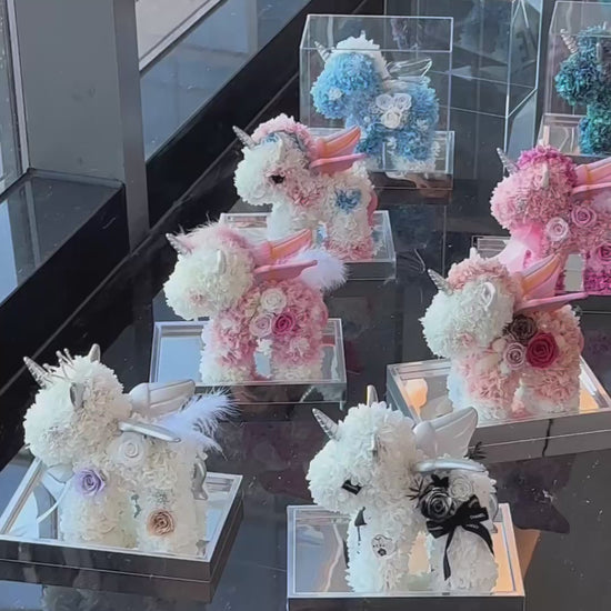 Personalized Unicorn with Preserved Flowers - Custom Name Gift for Baby Shower, Christmas, Special Occasions