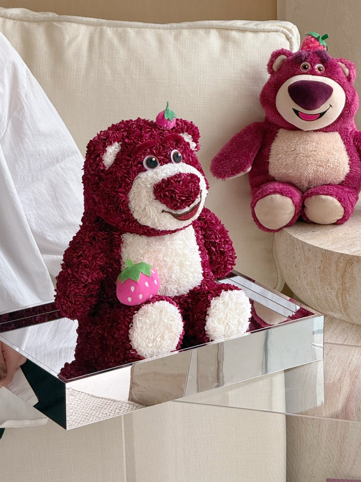 Flowers, hydrangeas, strawberry bear plush toys, birthday gifts, holiday gifts, Christmas gifts